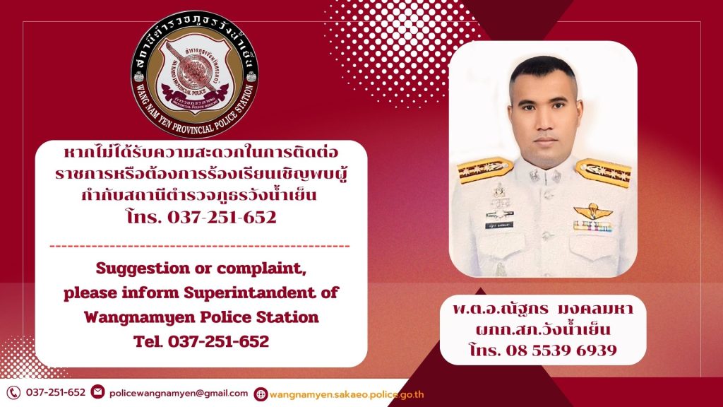 สถานีตำรวจภูธรวังน้ำเย็นซิ่ง – เสี่ยง – ผิดกฎหมาย ภายใต้การอำนวยการของพ.ต.อ.ณัฐกร มงคลมห