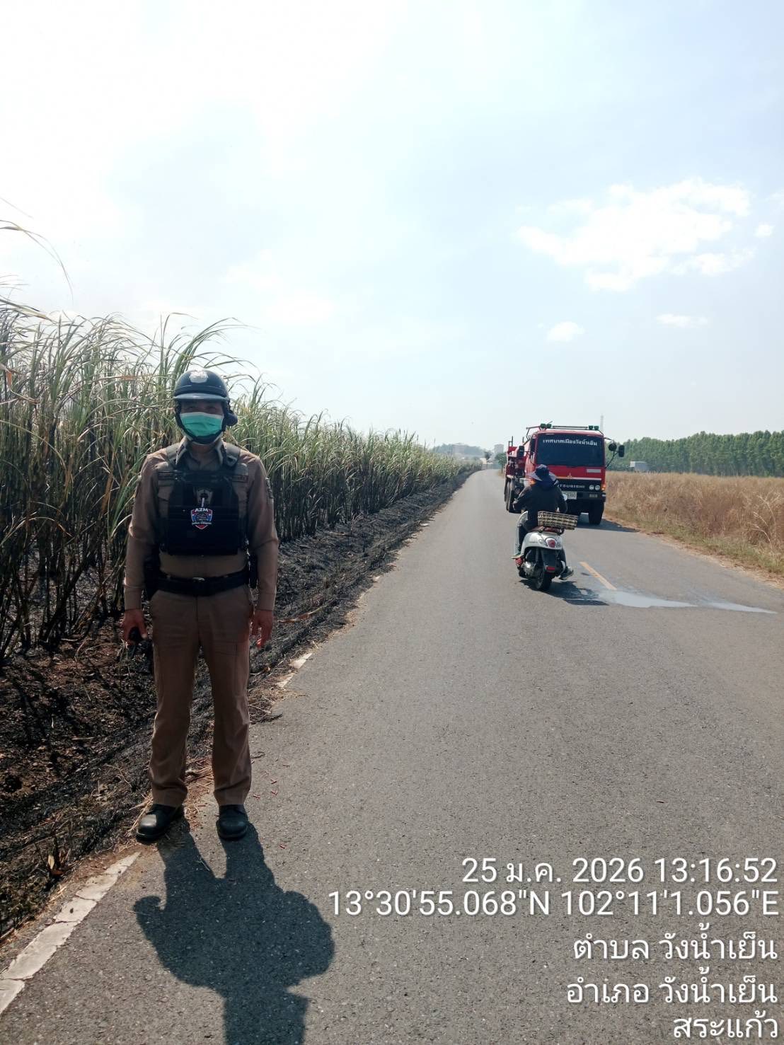ประชาสัมพันธ์ สภ.วังน้ำเย็น จากเหตุไฟไหม้ป่าอ้อยในพื้นที่ บริเวณตรงข้ามป่าลำไย หมู่บ้านวังจำปี ตำบลว