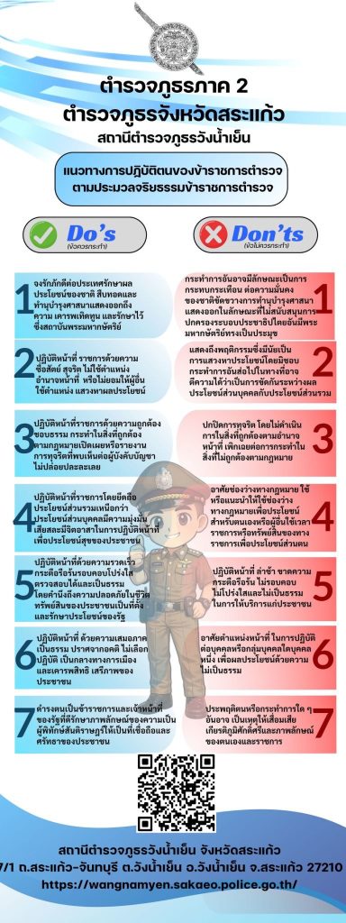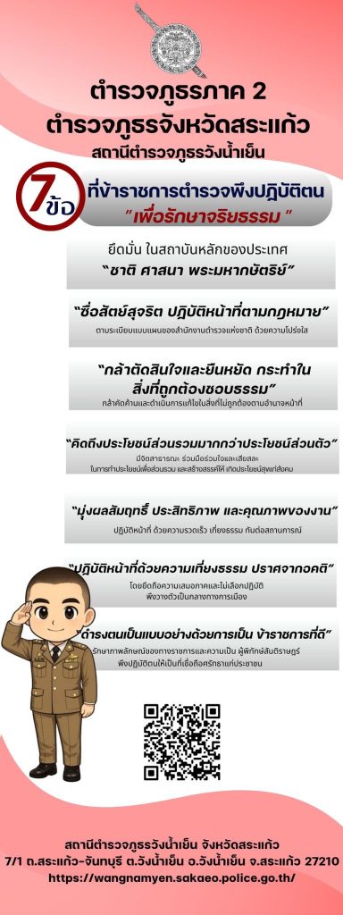 ตำรวจภูธรภาค 2 ตำรวจภูธรจังหวัดสระแก้ว สถานีตำรวจภูธรวังน้ำเย็นประชาสัมพันธ์แนวทางการปฏิบัติตนของข้า