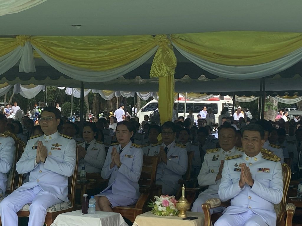 พร้อมด้วยหัวหน้าส่วนราชการระดับจังหวัด อำเภอ อปท. คณะแม่บ้านมหาดไทย คณะครู นักเรียน จิตอาสา และประชาชนในพื้นที่ ร่วมพิธีด้วยจิตใจอันเปี่ยมด้วยความจงรักภักดี