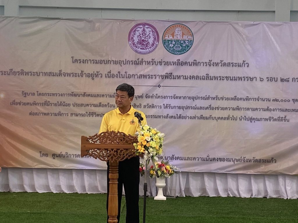 พ.ต.อ.ณัฐกร มงคลมหา ผกก.สภ.วังน้ำเย็น ร่วมพิธีมอบกายอุปกรณ์เพื่อคนพิการ โดยศูนย์บริการคนพิการ จังหวัดสระแก้ว ณ อำเภอวังน้ำเย็น จังหวัดสระแก้ว โดยมี นายปริญญา โพธิสัตย์ ผู้ว่าราชการจังหวัดสระแก้ว เป็นประธาน ในโอกาสเฉลิมพระเกียรติ พระบาทสมเด็จพระเจ้าอยู่หัว เนื่องในพระราชพิธีมหามงคลเฉลิมพระชนมพรรษา 6 รอบ วันที่ 28 กรกฎาคม 2567 จัดโดย กระทรวง พม. ร่วมกับภาคีเครือข่าย เพื่อมอบ กายอุปกรณ์กว่า 72,000 ชุด ให้กับคนพิการทั่วประเทศ
