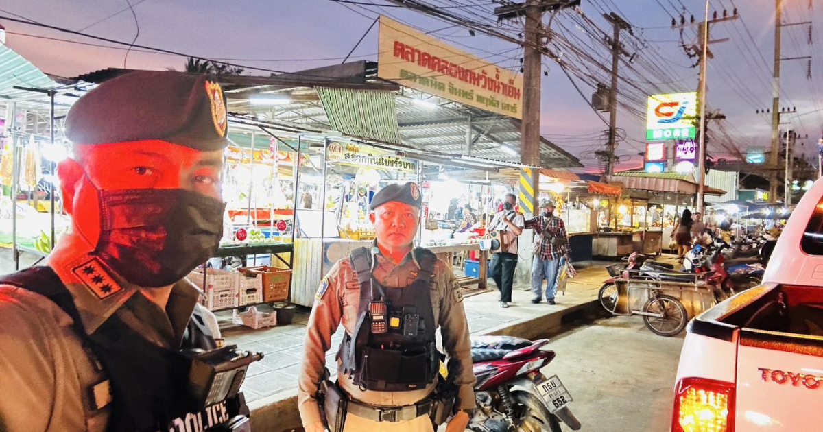 เจ้าหน้าที่อำนวยความสะดวกให้กับพ่อค้าแม่ค้าและประชาชนที่มาจับจ่ายใช้สอยอย่างเต็มที่ “อยู่ตรงไหน…ก็อุ่นใจ เมื่อมีตำรวจดูแล”