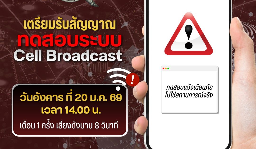 กรมป้องกันและบรรเทาสาธารณภัย ทำการทดสอบระบบแจ้งเตือนภัยผ่านสัญญาณโทรศัพท์เคลื่อนที่ หรือ Cell Broadcast ไปยังโทรศัพท์เคลื่อนที่ “ทั่วประเทศ” ของผู้ใช้บริการผ่าน 3 เครือข่าย คือ NT TRUE AIS
