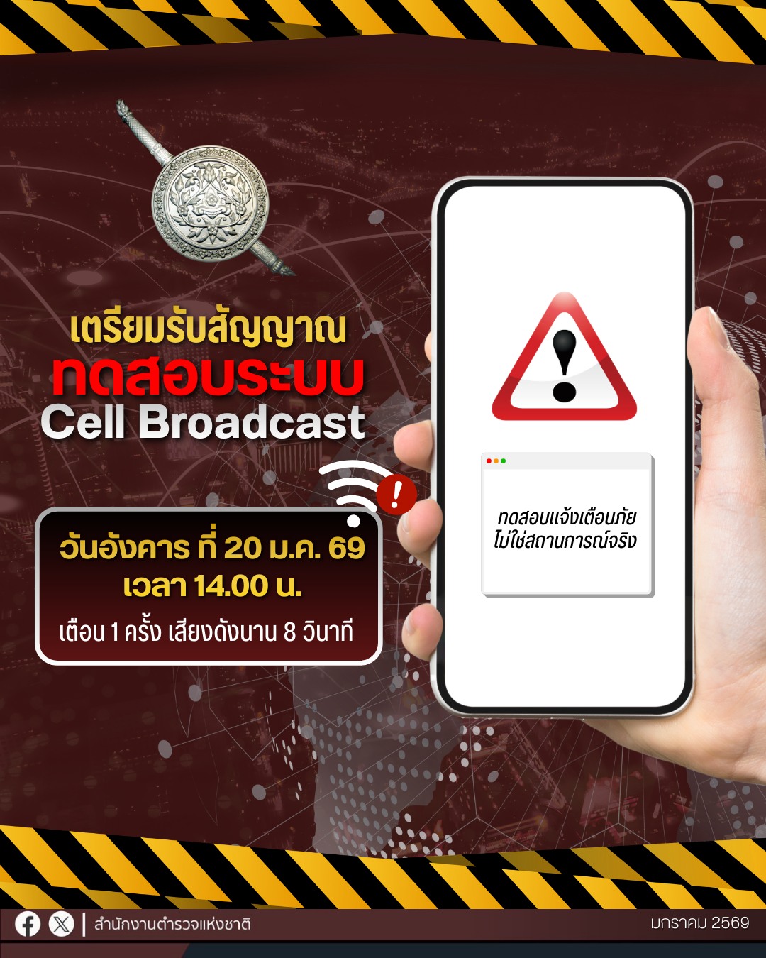 โทรศัพท์ดัง ได้รับข้อความ อย่าตกใจ พรุ่งนี้ บ่าย 2 โมง ทดสอบระบบเตือนภัย Cell Broadcast ทั่วประเทศกร