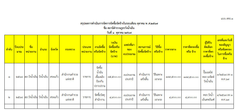 สรุปผลการจัดซื้อจัดจ้างรายเดือน ต.ค.