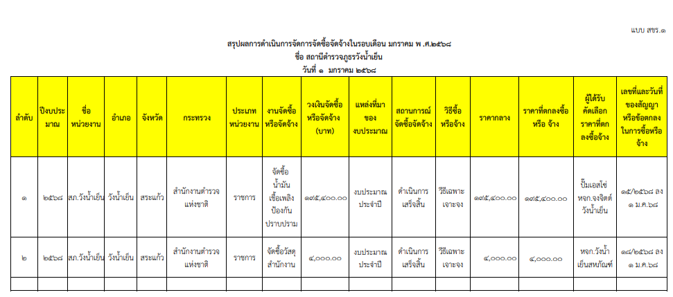 O15 สรุปผลการจัดซื้อจัดจ้างรายเดือน