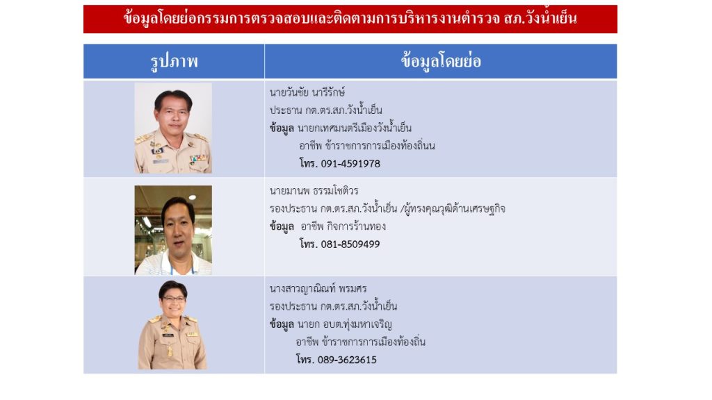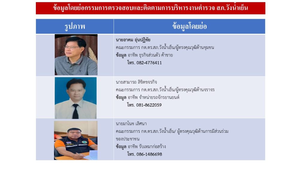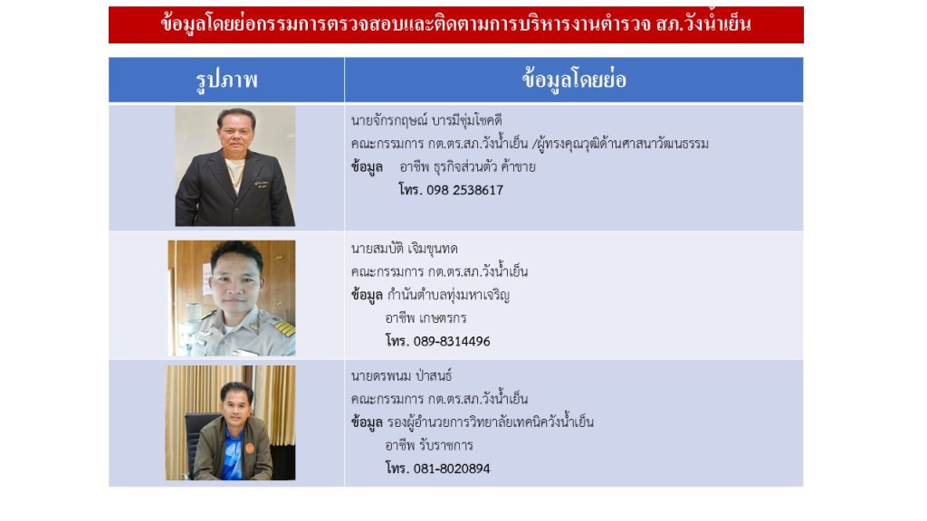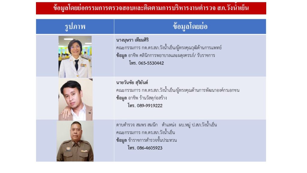ข้อมูลโดยย่อกรรมการตรวจสอบและติดตามการบริหารงานตำรวจ สภ.วังน้ำเย็น
